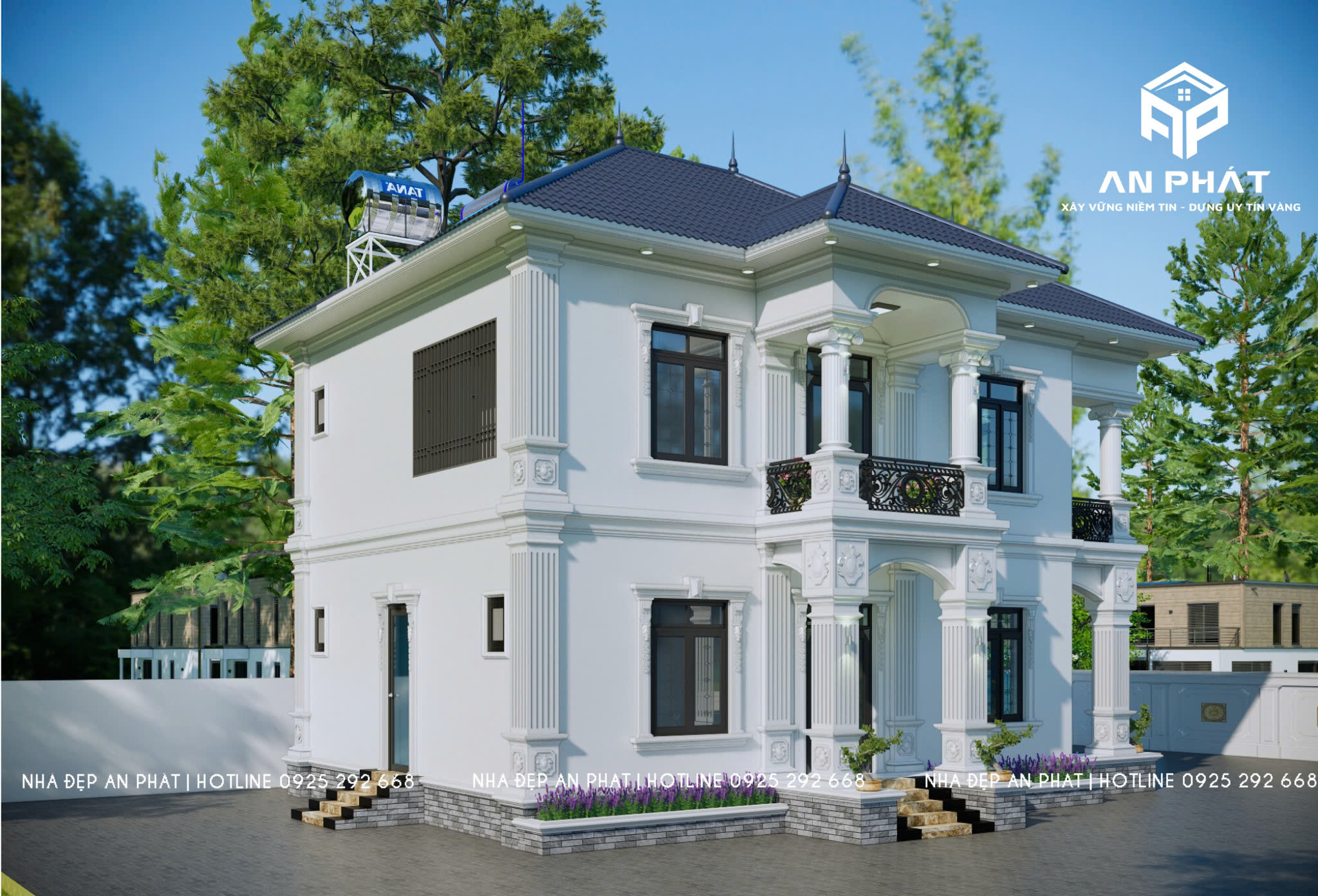 Tầng 1 được bố trí khoa học với không gian sinh hoạt chung thoáng đãng, phòng khách rộng rãi, bếp ăn tiện nghi. Tầng 2 là khu vực riêng tư với các phòng ngủ thoải mái, đầy đủ tiện nghi. Đặc biệt, việc sử dụng vật liệu hiện đại và tiết kiệm năng lượng giúp ngôi nhà thêm phần bền vững và thân thiện với môi trường.